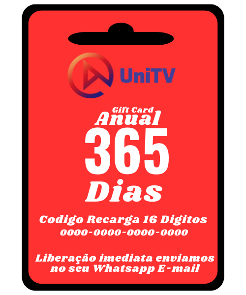 Recarga UniTv  1 ano / Melhor Preço e Entrega Garantida. Envio Imediato. Receba imediatamente no seu WhatsApp ou E-mail.